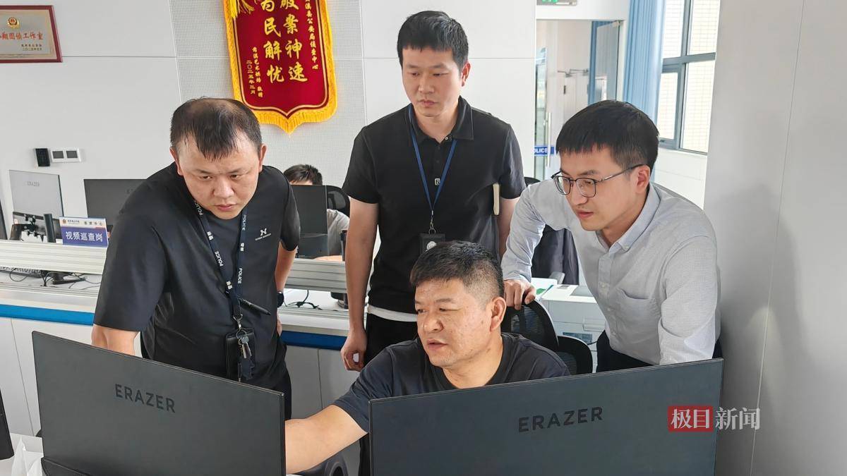 郭庭宇(电脑前)与同事研判案情